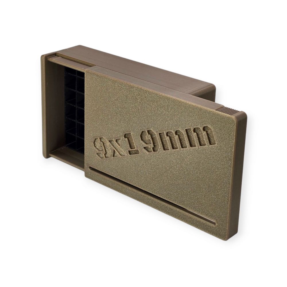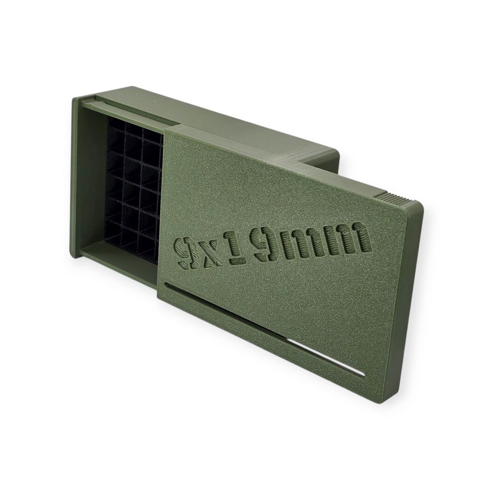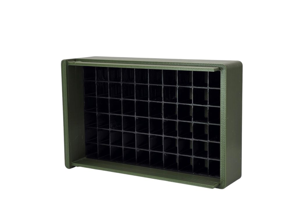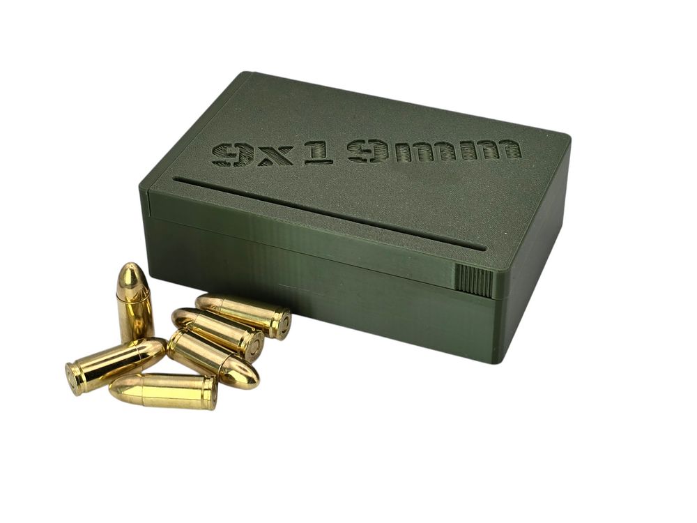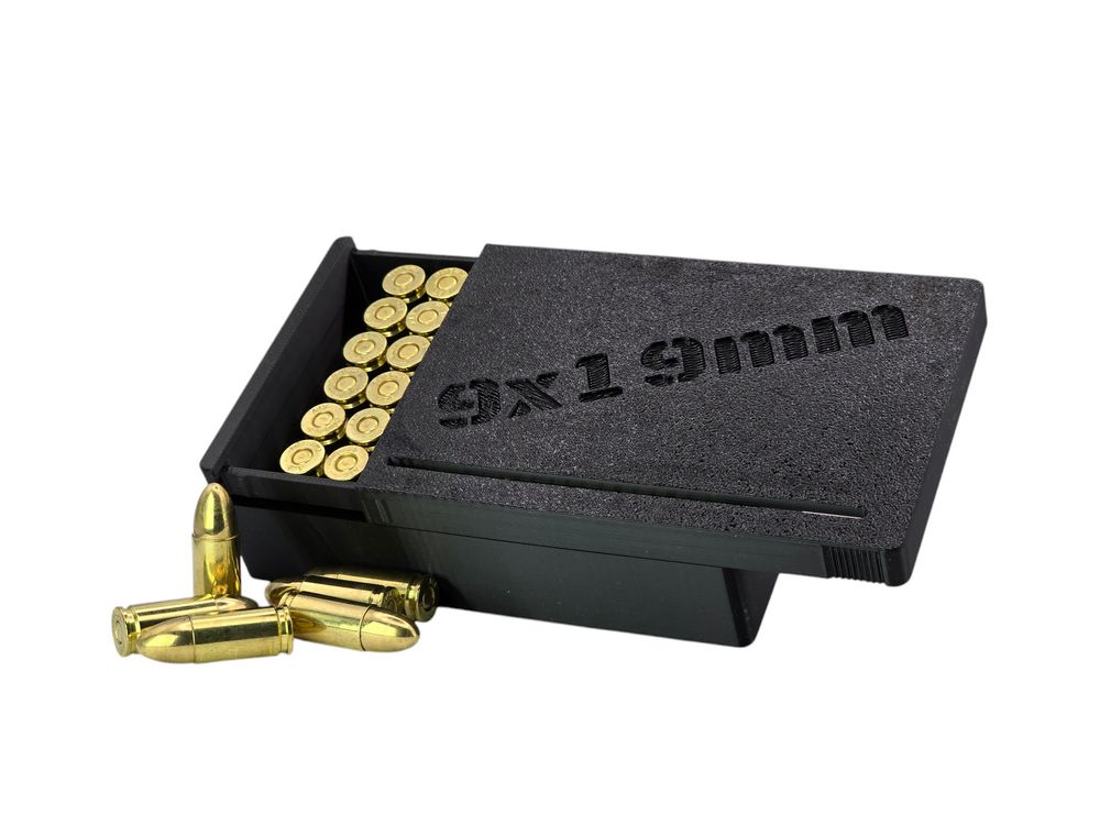 Pudełko na 60 sztuk amunicji 9x19mm wydrukowane w 3D to innowacyjne rozwiązanie, które pozwala na przechowywanie 60 sztuk amunicji pistoletowej kalibru 9x19mm w bezpieczny i wygodny sposób. Pudełko pozwala na przechowywanie 6×10 sztuk amunicji przez co świetnie nadaje się dla instruktorów strzelectwa szkolących przyszłych strzelców. Taki układ pozwala z łatwością odmierzać po 6 nabojów zgodnie z wymogami egzaminu praktycznego z pistoletów centralnego zapłonu – LINK.